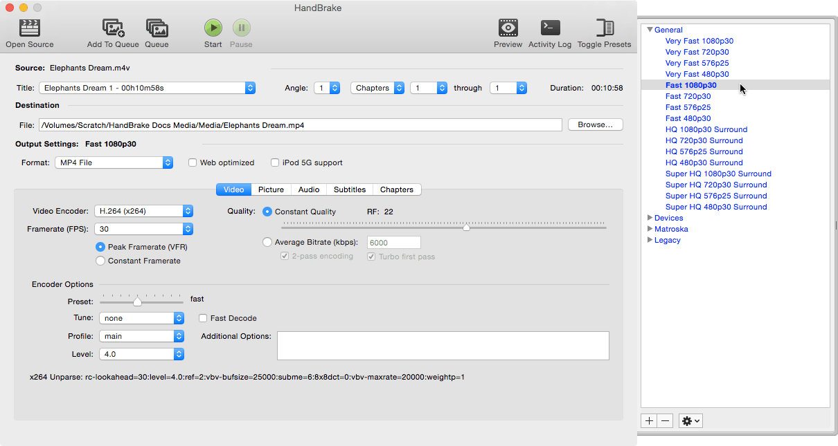 The default Fast 1080p30 preset is often a good choice because it’s fast and compatible with most devices.