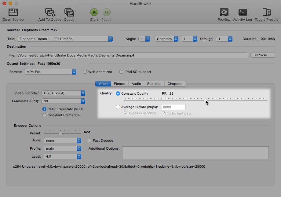 HandBrake’s default settings and most of the official Presets use a constant quality encoding method. This makes your new video look consistent from start to finish. Always use constant quality unless you have a specific reason not to.