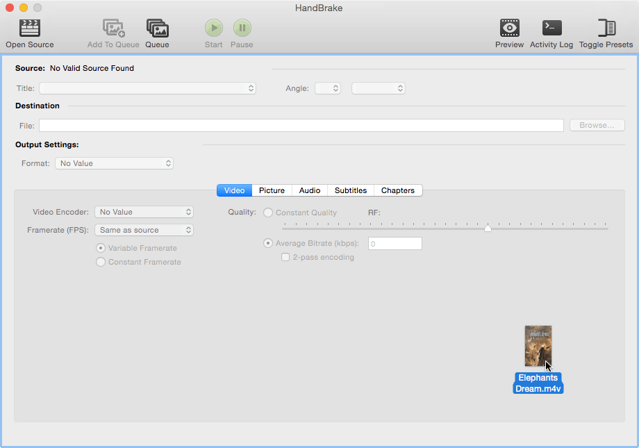 You can also drag and drop a video Source onto HandBrake’s main window.