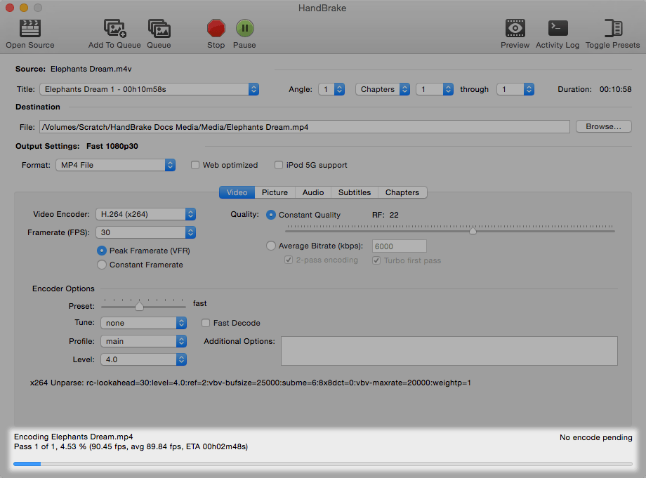 HandBrake will report its progress while it’s working and alert you when it’s finished. Then you will have a new video file at the Destination you specified.
