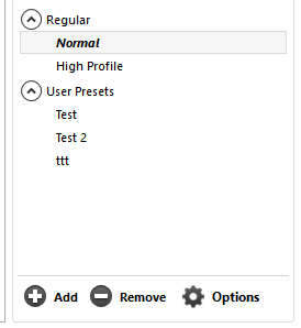 You can create your own presets by clicking the “Add” button on the preset pane.
