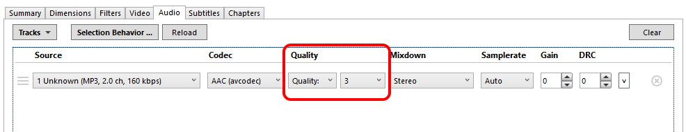 The Audio Tracks quality settings are controlled via the “Audio” tab on the main window.