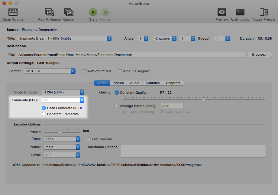 HandBrake’s frame rate controls.